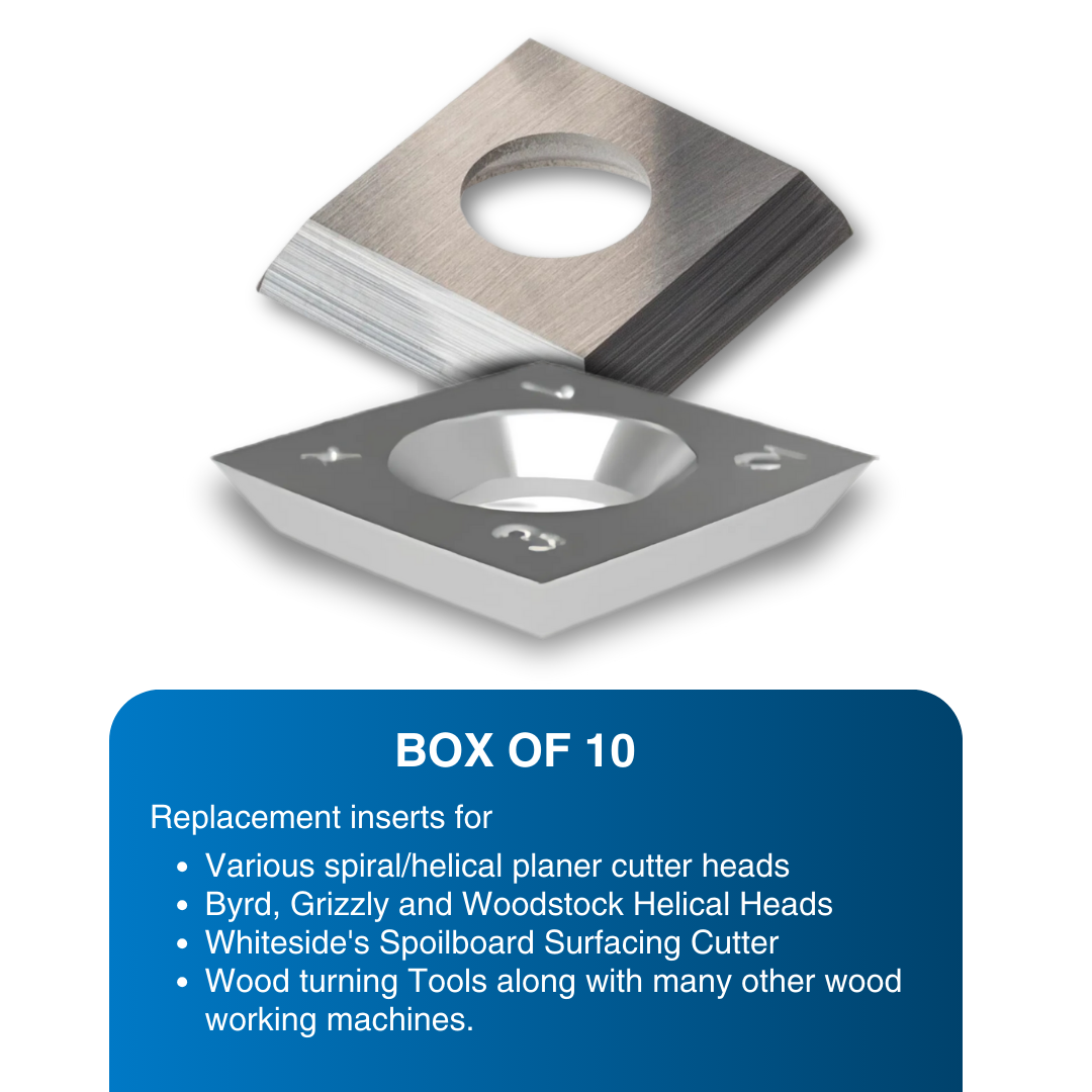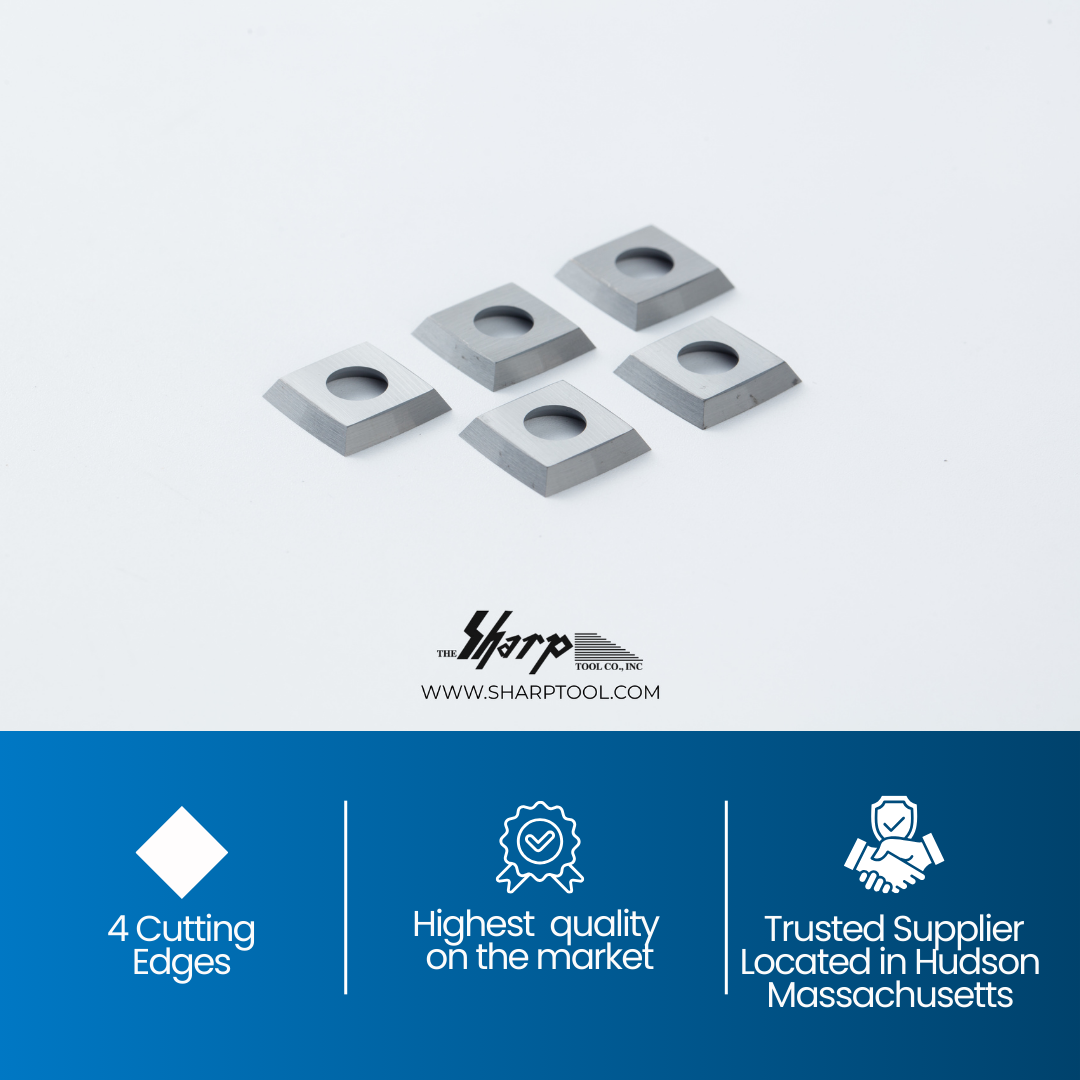 Carbide insert knives for the wood working industry. MG18 Grade is designed and proven to last longer than competitors' grades. Our 15mm insert knives knives have extremely tight tolerances to ensure smooth planing.