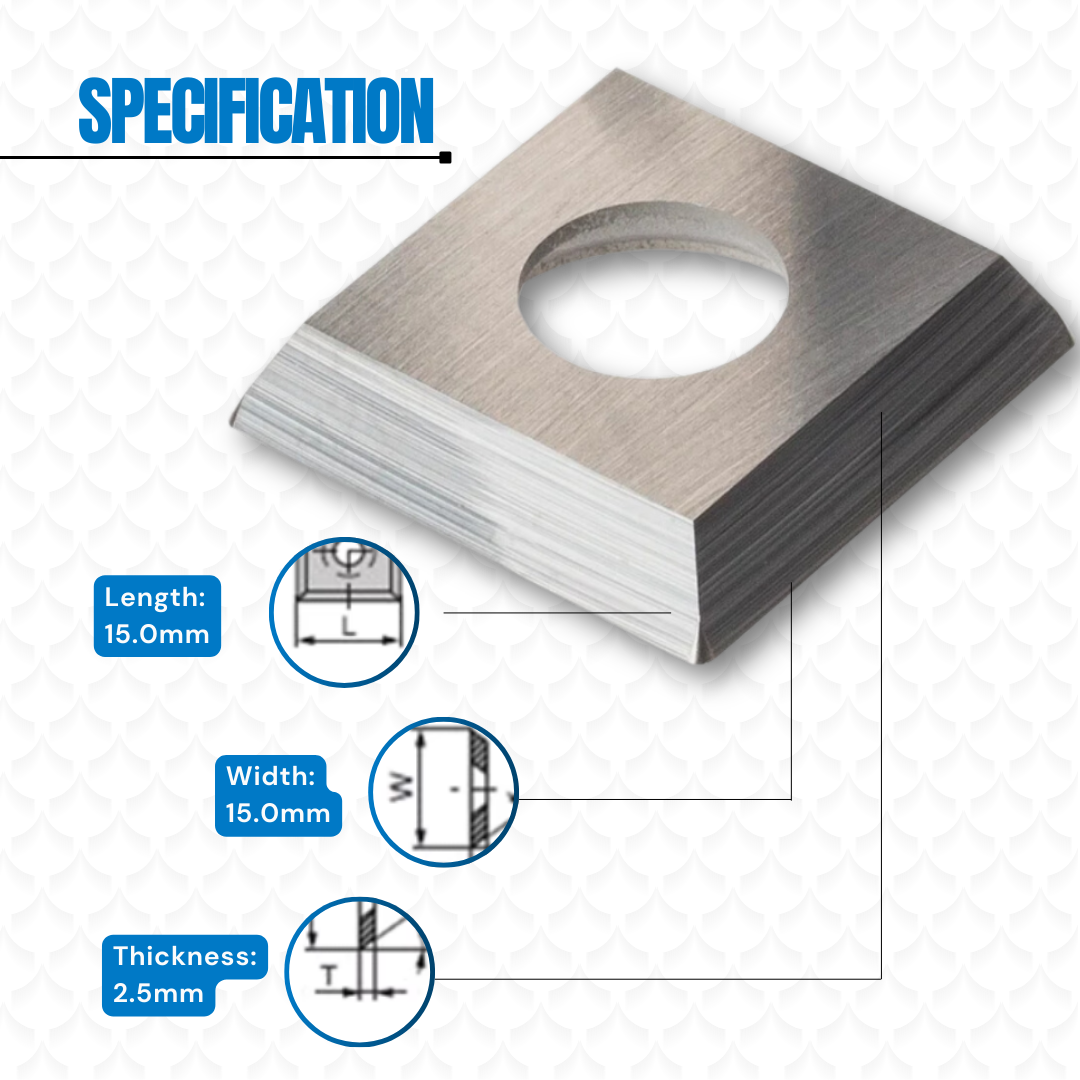 Carbide Insert Knife 15mm x 15mm x 2.5mm Grade: MG18 -BOX OF 10